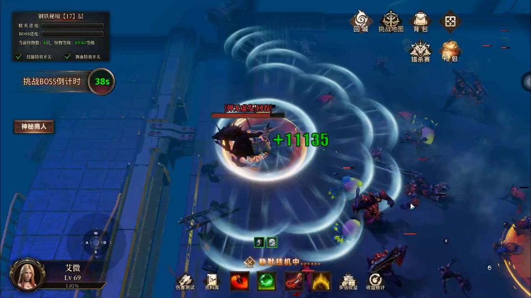 技能能连法为:旋风斩-升华-进阶-法术控制-幽怨-爆伤(直接加成到面板)