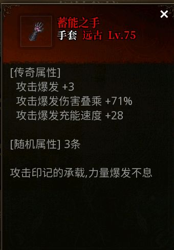 这条是我最近的最大收获之一,因为我发现,头盔以及武器,有条爆发叠乘伤害非常强势,