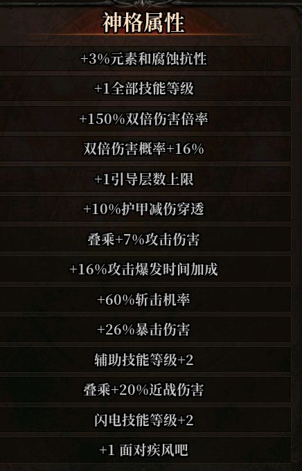这是我们旋风,乃至斩击流派的优点之一,因为15层以上很缺生存,不得不放弃一些如:受伤叠乘+伤害,减护甲叠乘+伤害等。