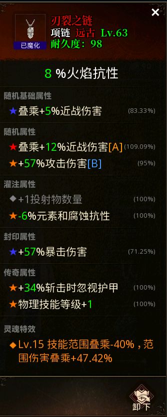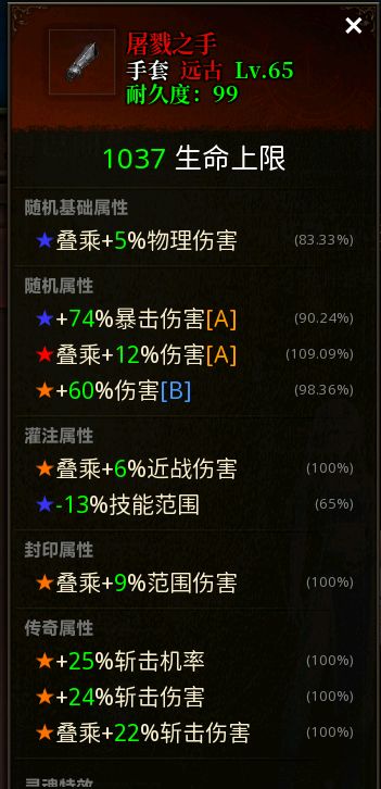 这件装备本身有斩击几率,我选择了从天赋石板上来堆满斩击,来吃法术控制的40+more伤