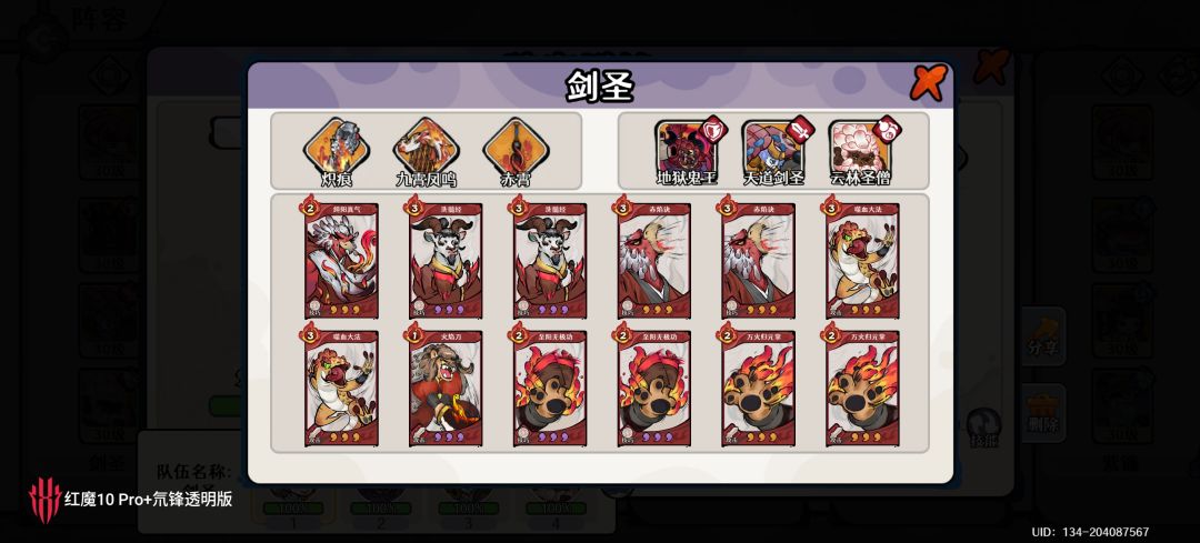 这套阵容主要以剑圣、鬼王和圣僧三位火系传奇武侠组合,以抽牌挂火相关的武学卡为构建。