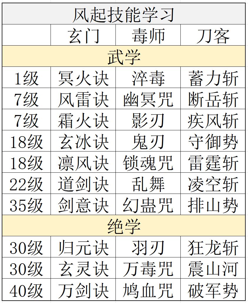 玄门(隐仙岛--桃林--桃丘),毒师(乌蒙泽--迷雾岭--试炼谷),刀客(牛家村--校场--习武场)