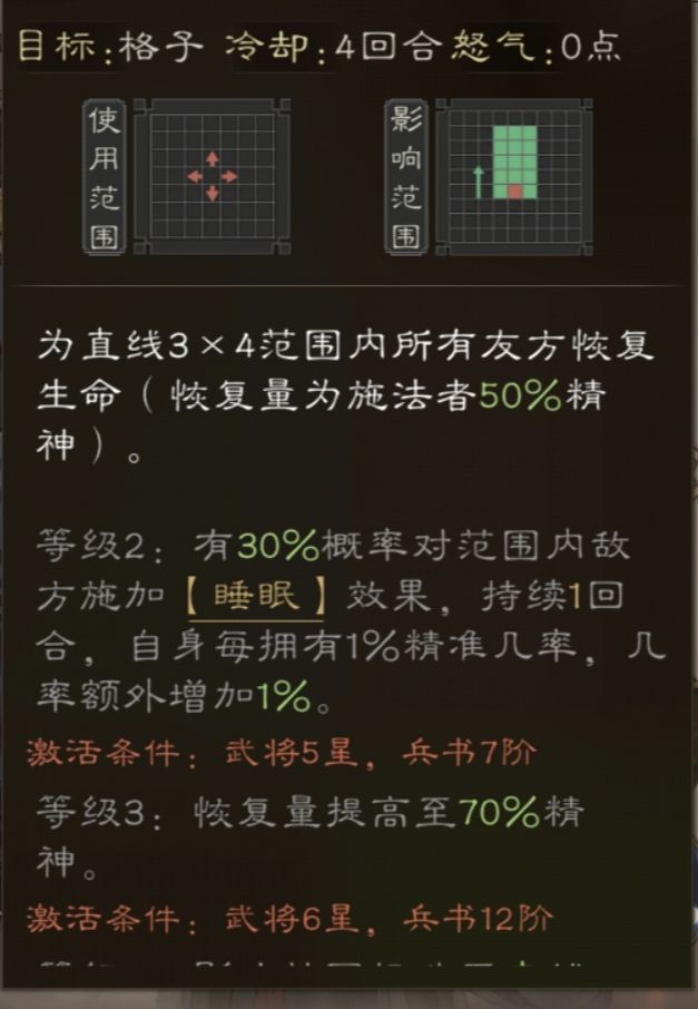 静息调神:这在大范围治疗友方同时,还能使敌人陷入睡眠状态(不可免疫哟,非常强力的全体控制技能)