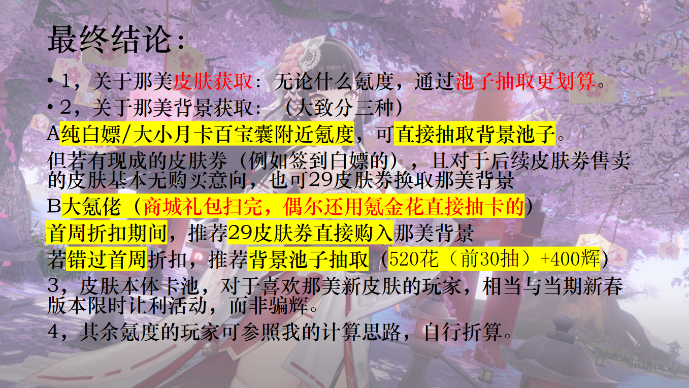其中氪佬可以考虑直接用皮肤券买背景,后文有进一步的计算。