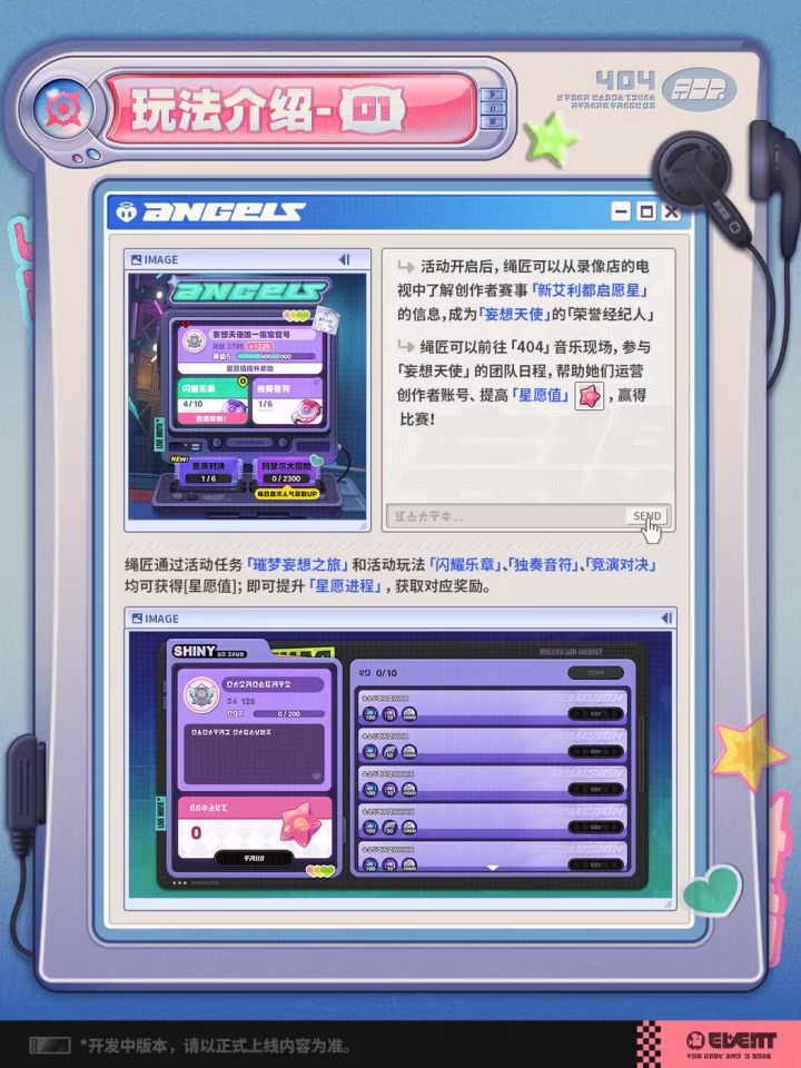 根据其公布内容,玩家需要在三个新玩法【闪耀乐章】、【独奏音符】和【竞演对决】当中积累一定数值,从而获得对应奖励。