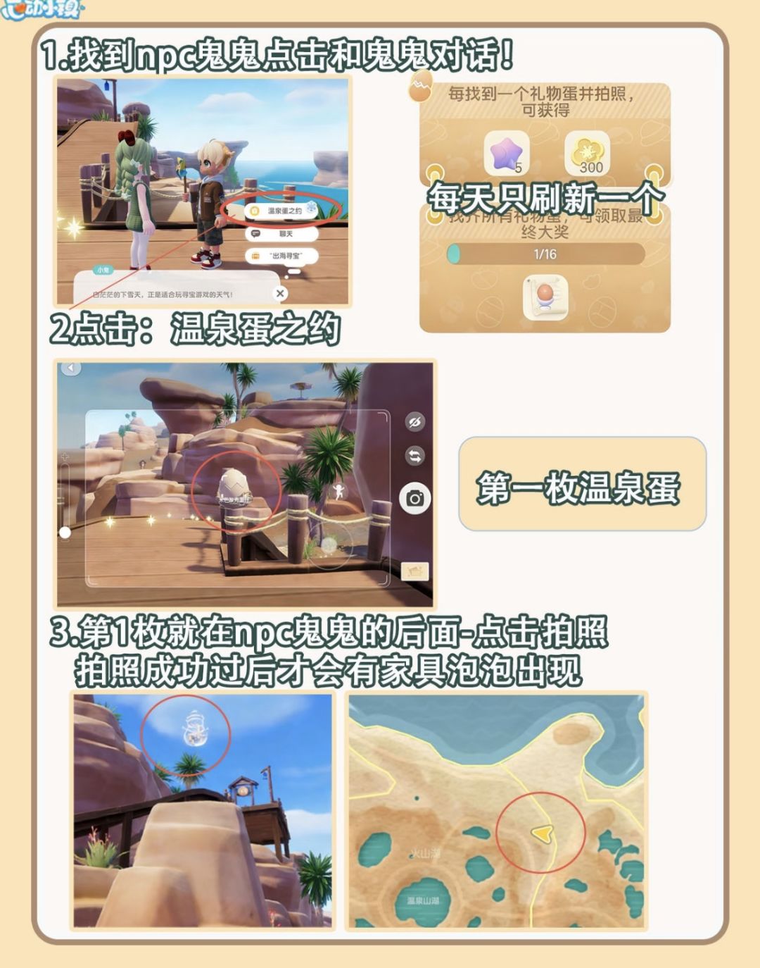 顺便提醒,拍照后别忘了“顶”一下泡泡才算真正领取。明天同一时间,记得再来蹲下一枚蛋的位置。坚持打卡,不仅能拿满奖励,还能在小镇日记里留下一整串“寻蛋足迹”——这大概就是属于收集玩家的浪漫吧。