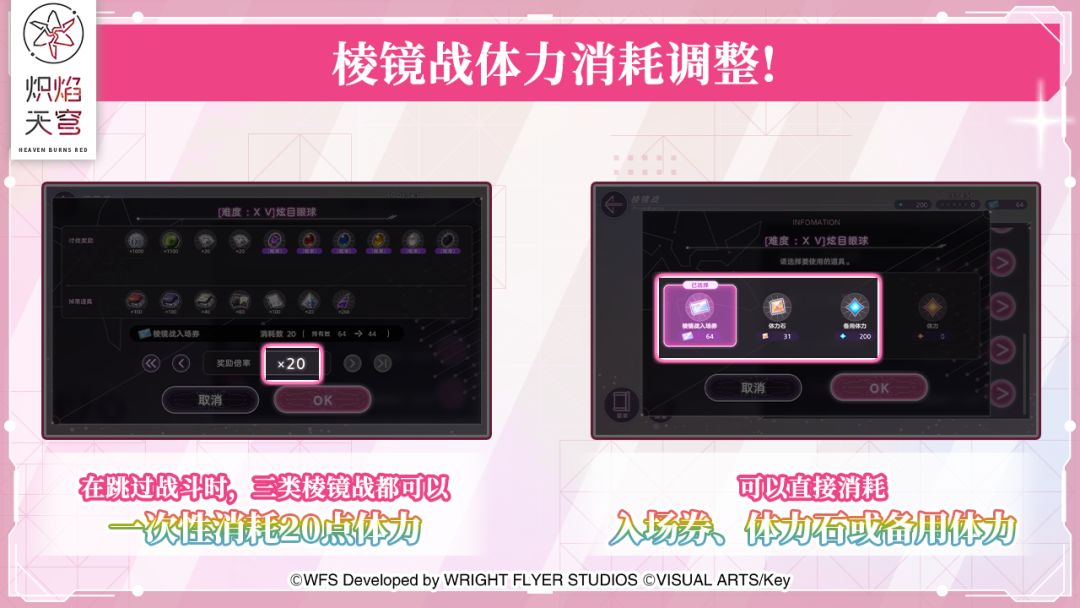 在跳过战斗时,三类棱镜战都可以一次性消耗「20点体力」!