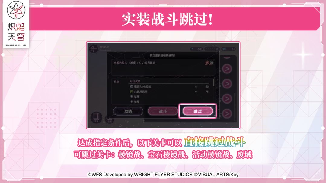 在达成指定条件后,棱镜战、宝石棱镜战、活动棱镜战及废域可以进行「跳过」!