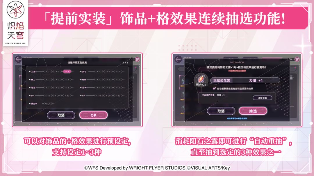 本次版本更新后,可以对饰品的+格效果进行1~3种预设定。