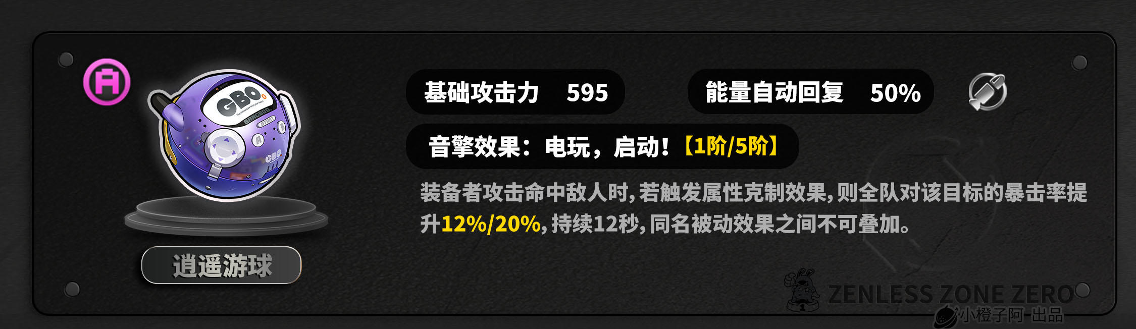 ⑤音擎:逍遥游球;驱动盘:【月光骑士颂】+【静听嘉音】;所需副词条为15条大攻击与1条小攻击。