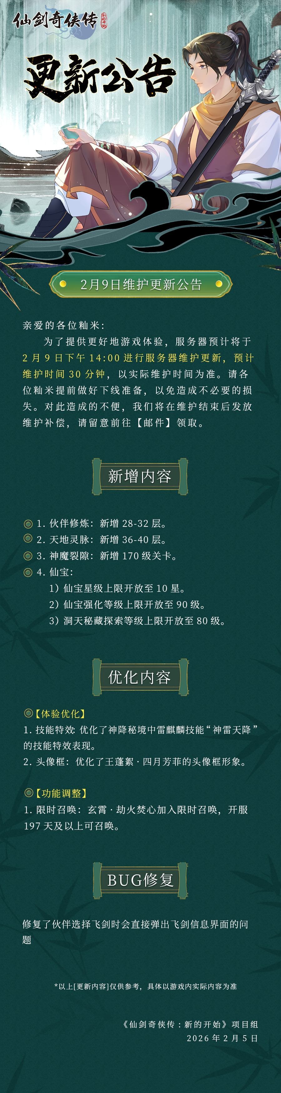 仙剑奇侠传 新的开始 维护公告