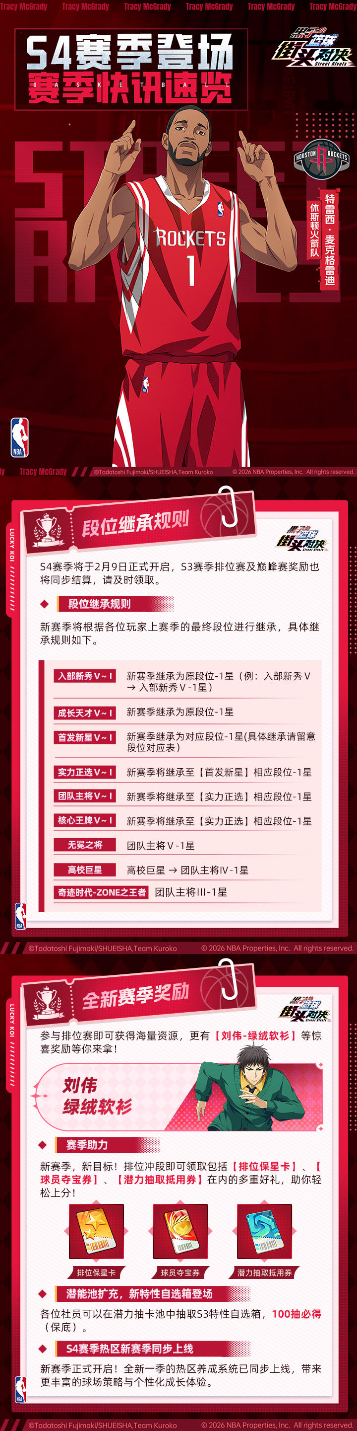 《黑子的篮球:街头对决》S4赛季将于2026年2月9日更新后正式开启