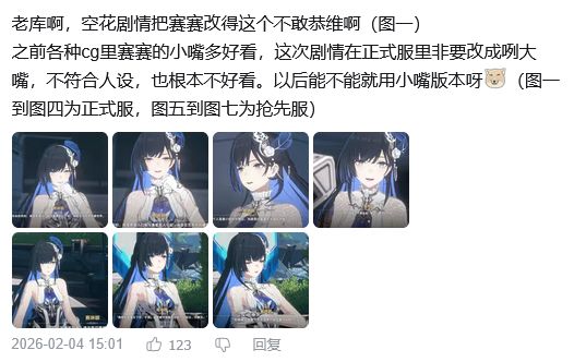 有的说什么剧情太公式写的还难看,还有的说什么发糖太尴尬好感度还不够,部分赛琳娜厨则在抗议官方把剧情里角色的嘴型给改了,把她那个小嘴变成了咧大嘴,破坏了文学少女的氛围看着挺别扭的