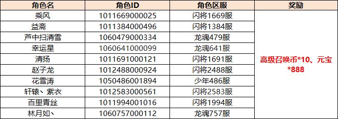 「高级召唤币*10、元宝*888」