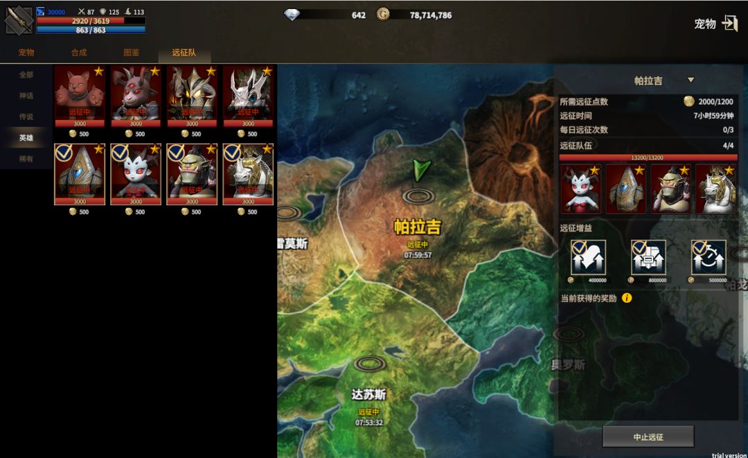 4:地图等级越高所需的远征点数越多,宠物数量足够还可以多个地图同时远征