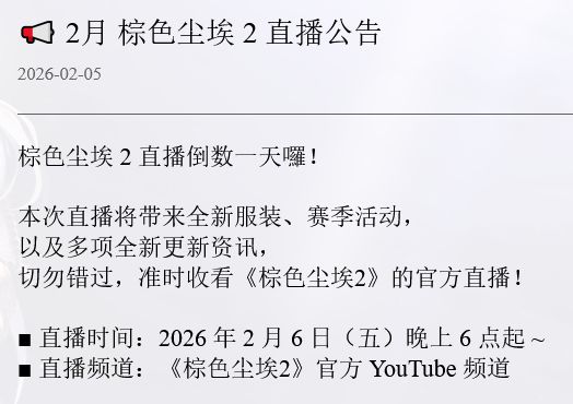 棕色尘埃直播定档 玩家:别犯错!