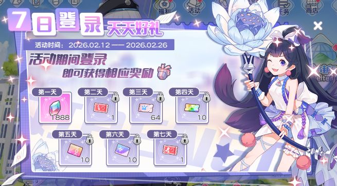 签到内容:钻石*1888+稀有专属兑换券*1+高级圣器补给券*10+高级印记补给券*10+稀有少女兑换券*1