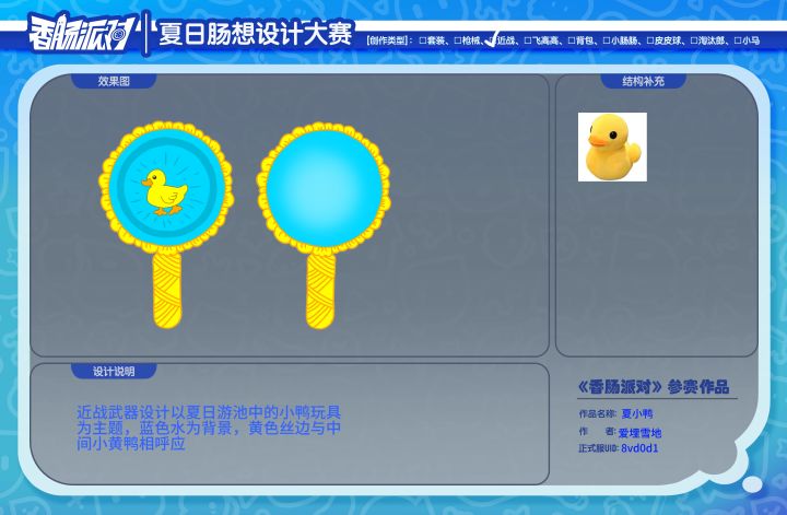 设计灵感:以夏日泳池中的小黄鸭玩具为主题,蓝色水为背景