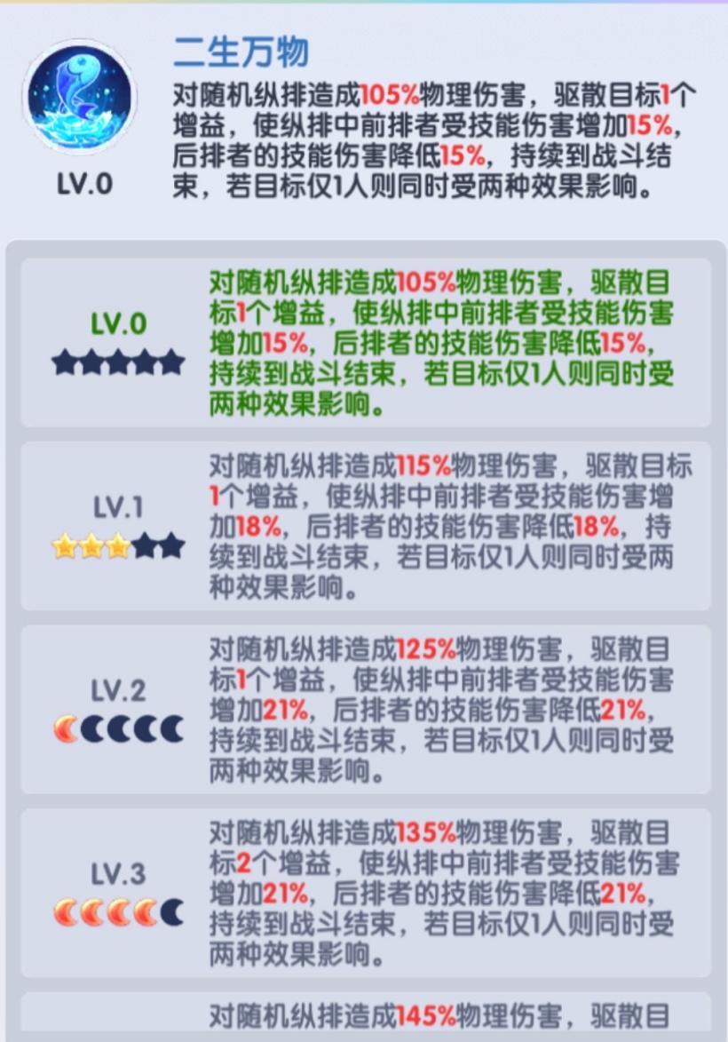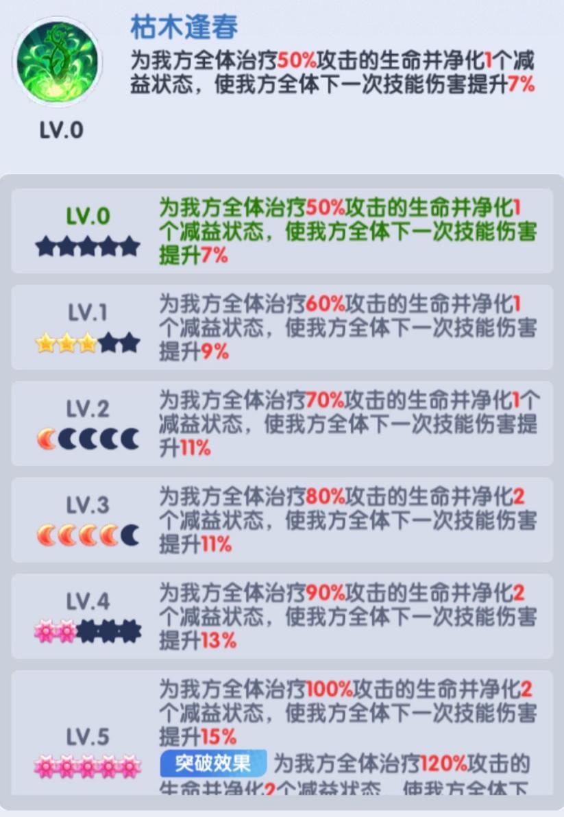 金柳净瓶的技能效果涵盖治疗、净化,还能增强下一次技能伤害,功能全面但无突出亮点,其中全体净化为其核心优势,不过该效果可由蔡文姬、华佗、卧龙等武将实现,因此其升星优先级不高。养成建议为先激活解锁技能,仅用于阵容回血加伤即可,升星优先级排第三或第四;升星目标优先至 4 月亮,解锁净化 2 个减益效果的核心属性。