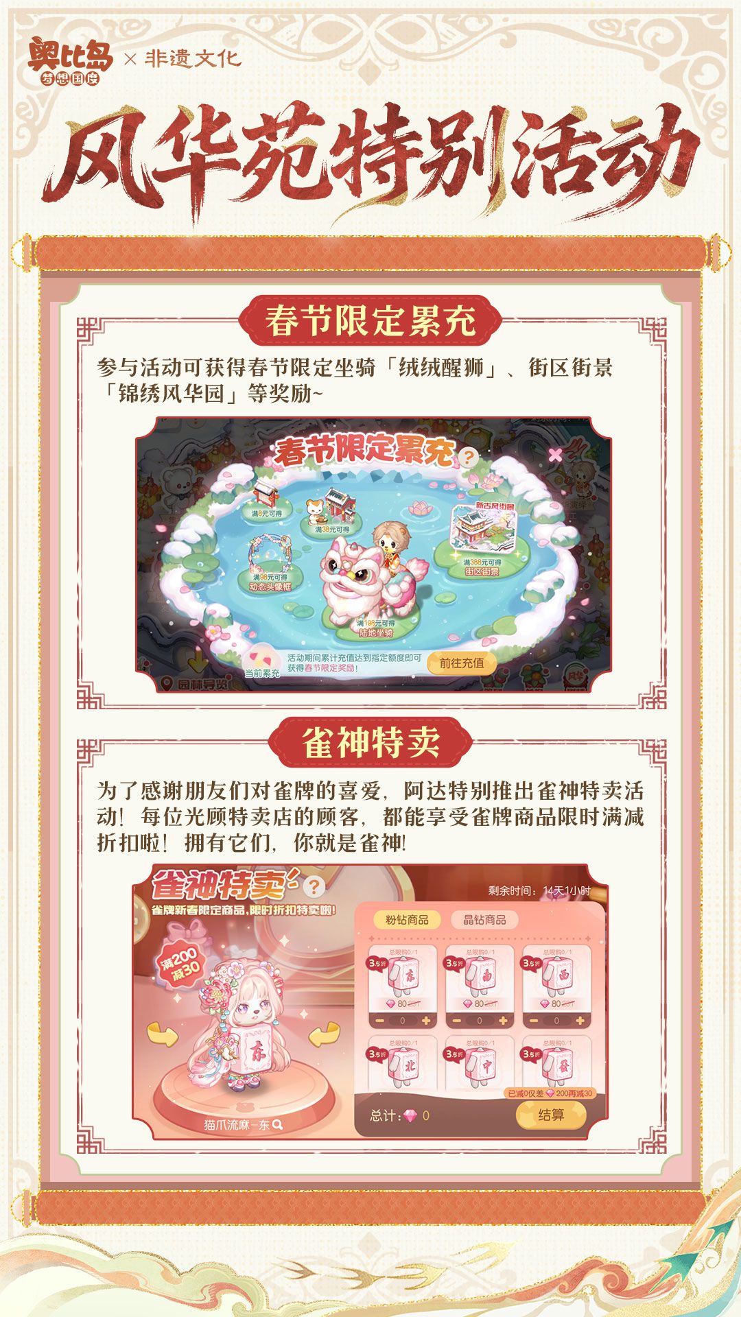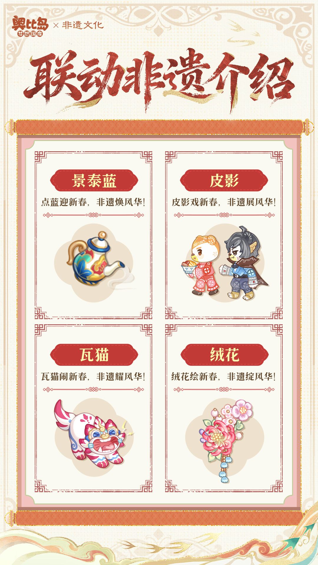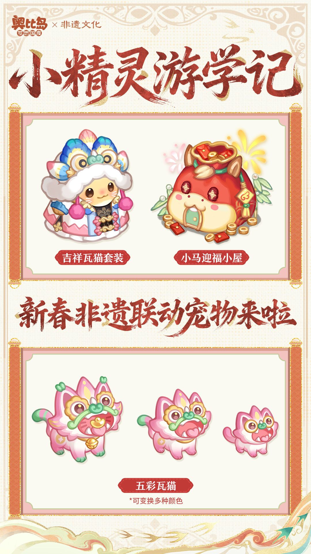 ⭐️4.7「非遗风华」版本将于2月10日正式上线,景泰蓝、皮影、绒花、瓦猫非遗主题时装&家具限时上线,首届奥比春晚、全新麻将玩法、新春园林场景、主线更新以及超多版本福利不容错过!