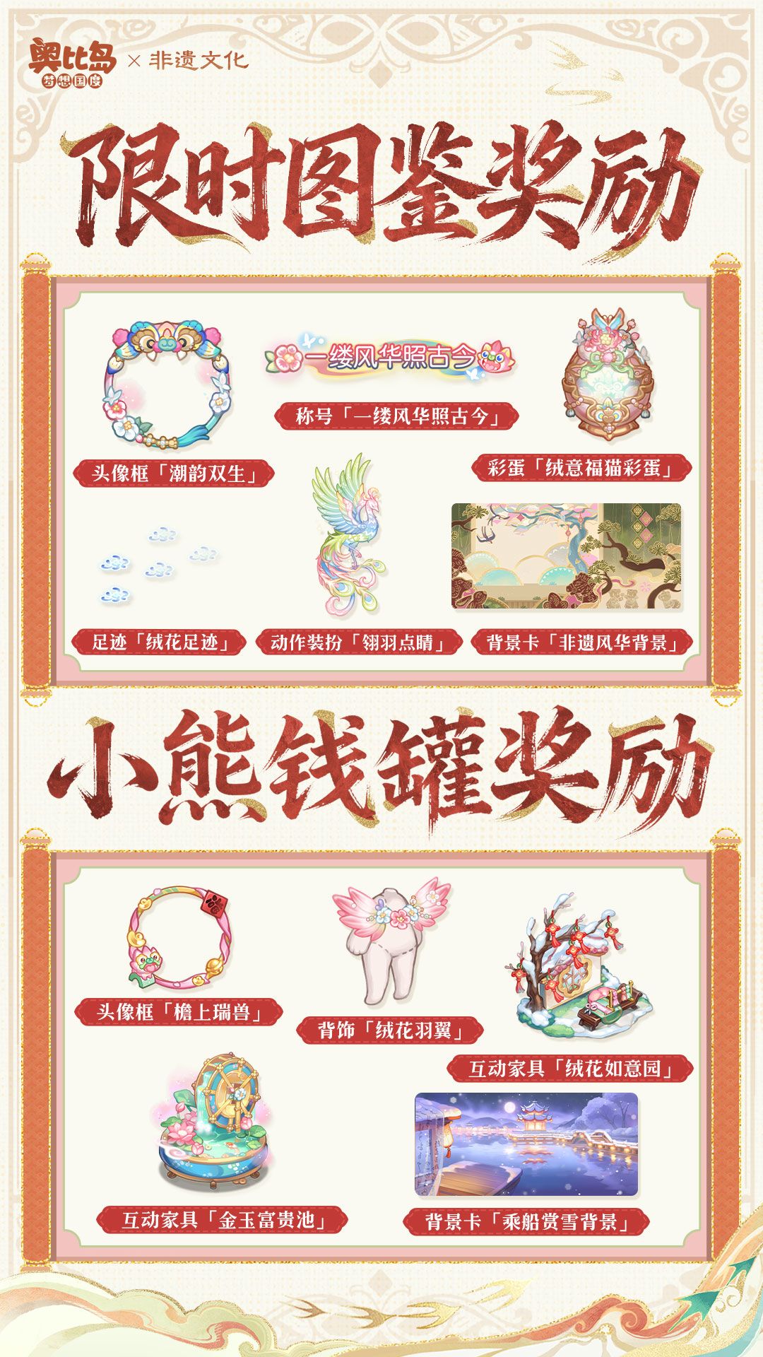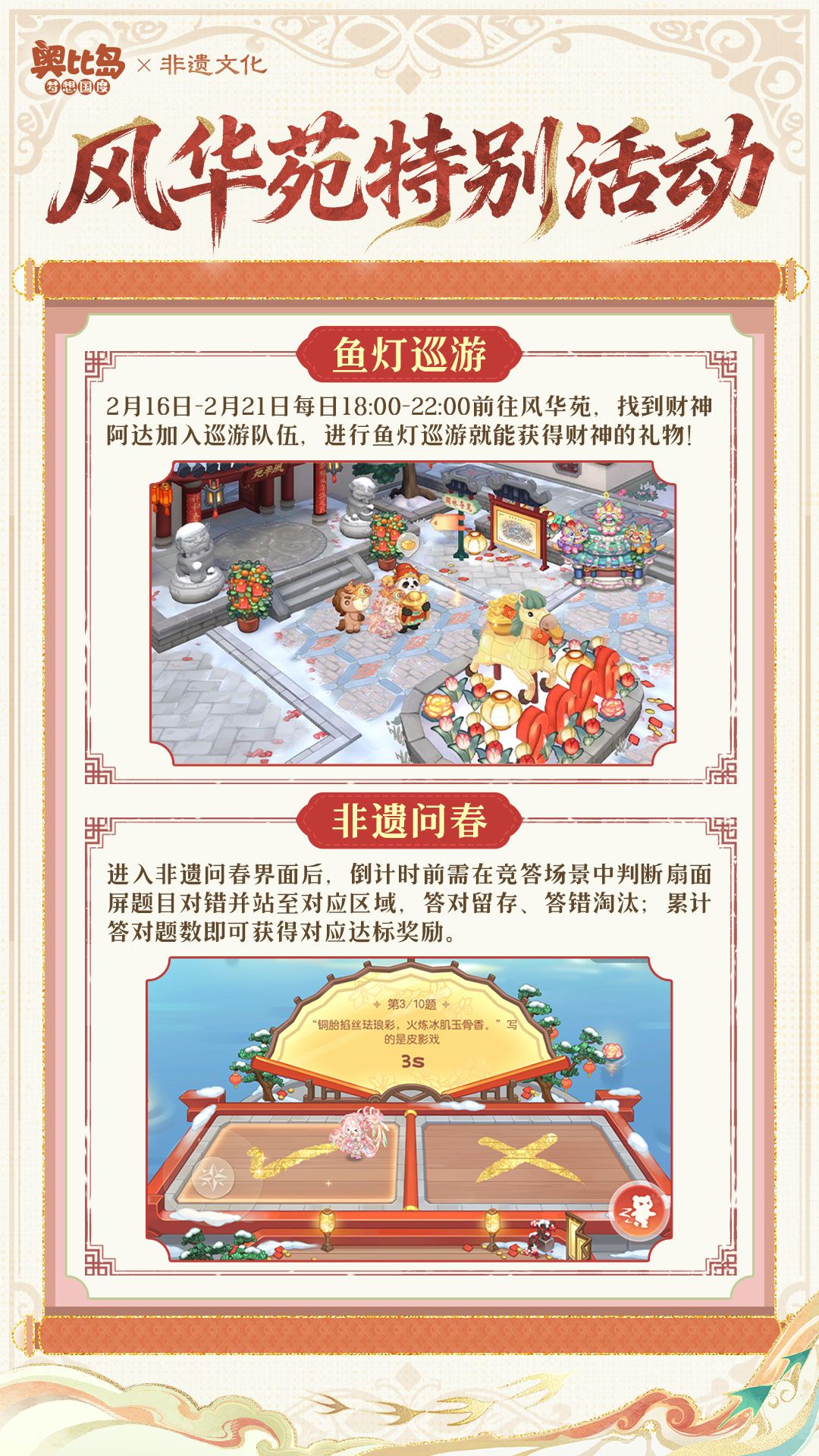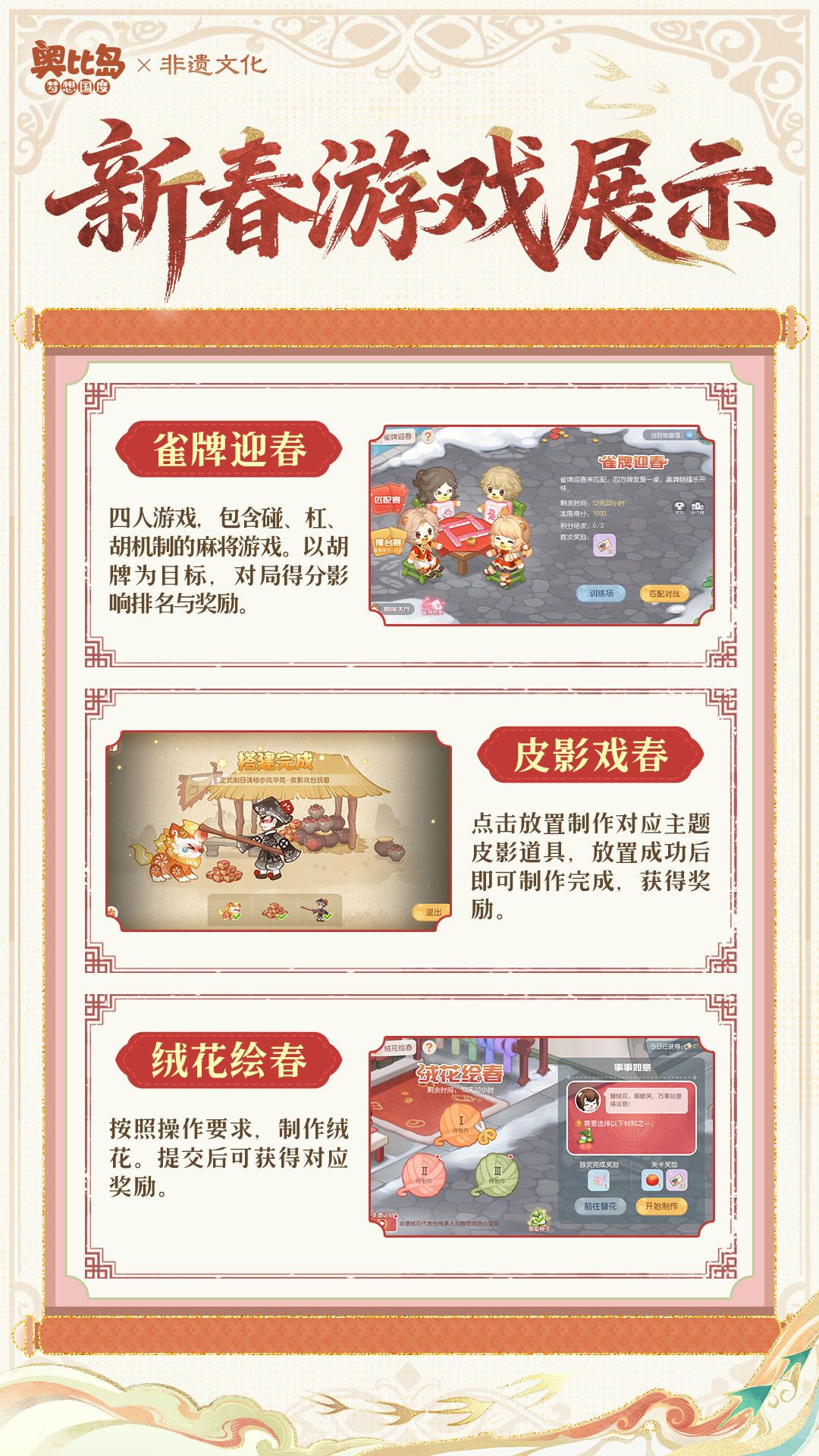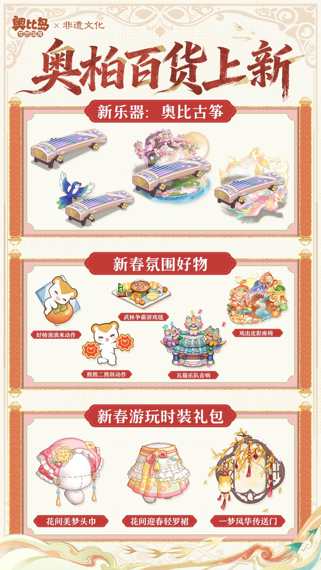 ⭐️4.7「非遗风华」版本将于2月10日正式上线,景泰蓝、皮影、绒花、瓦猫非遗主题时装&家具限时上线,首届奥比春晚、全新麻将玩法、新春园林场景、主线更新以及超多版本福利不容错过!