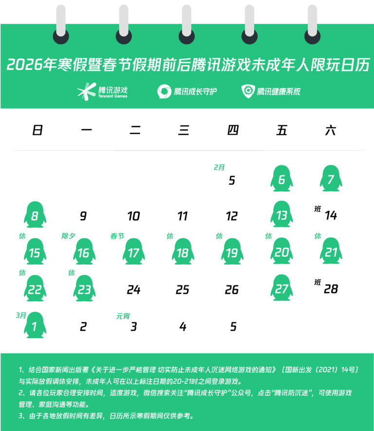 【快讯】寒假未成年人限玩日历