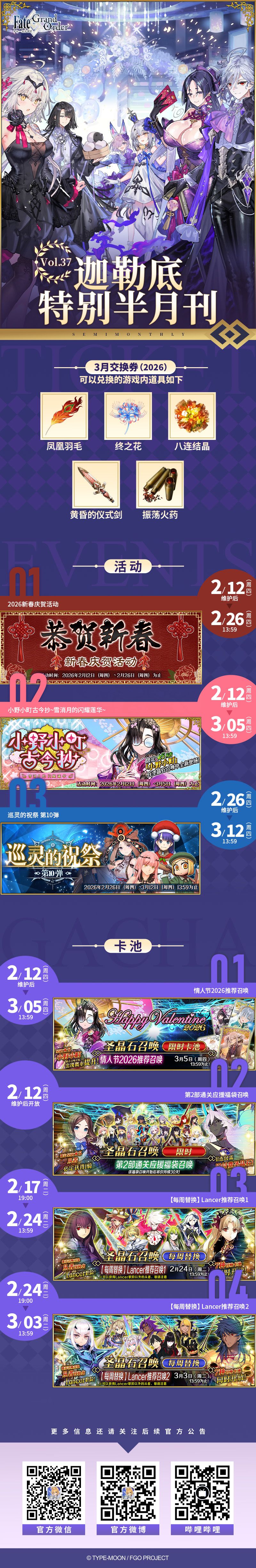 感谢各位御主对《命运-冠位指定》一直以来的关注和支持,为方便御主确认后续活动安排,《迦勒底特别半月刊》Vol.37已发布,详见下图。