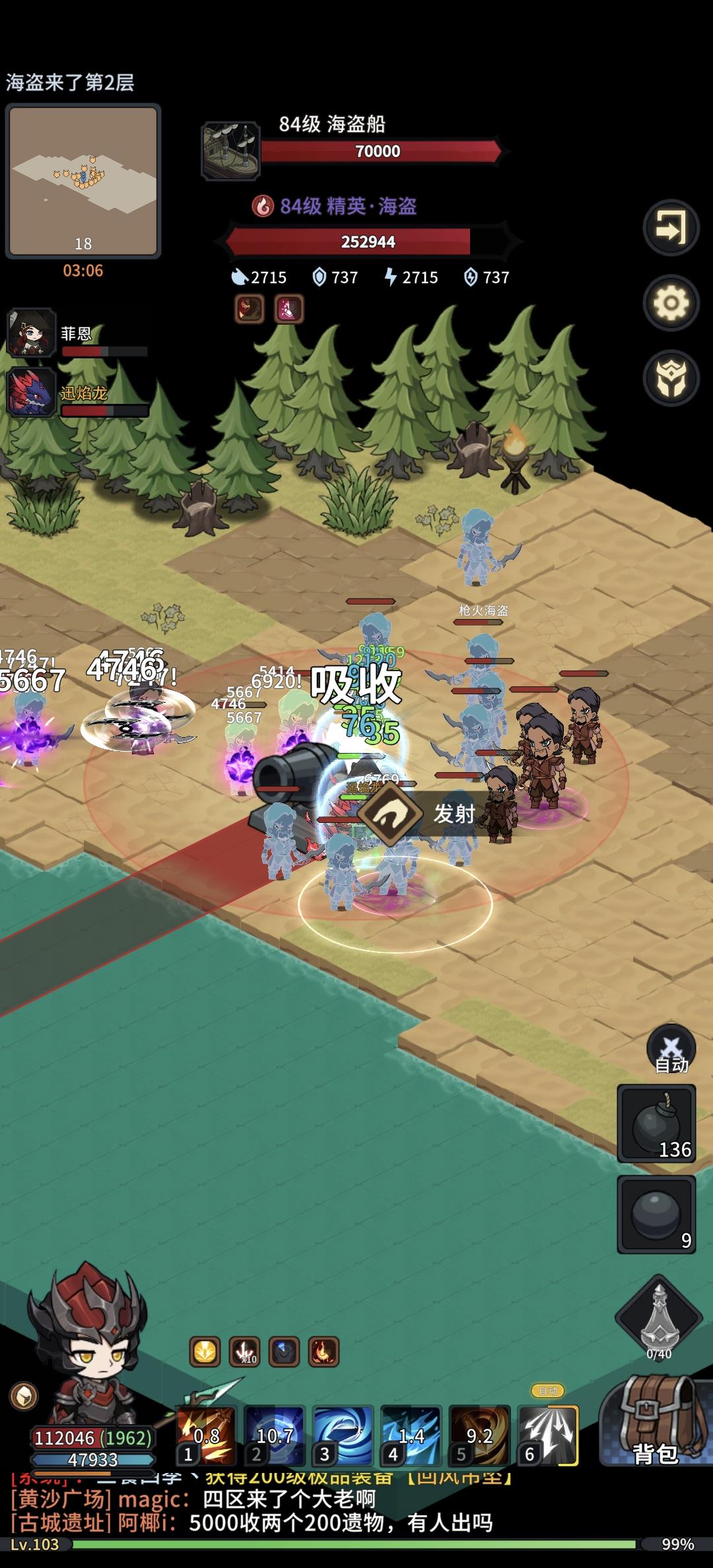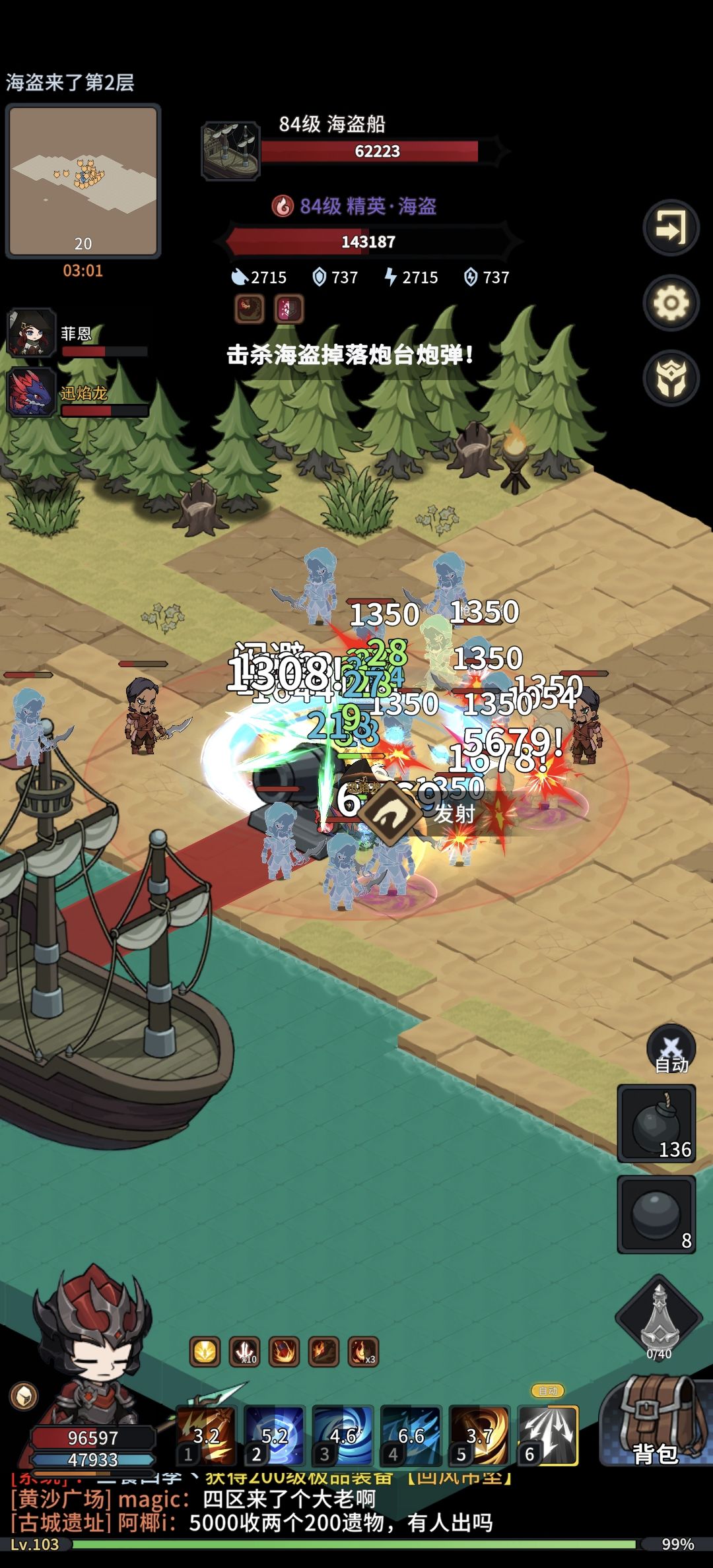 1-继续丢炸弹清理海盗防止太多怪导致自己倒了并搜集大炮炮弹
