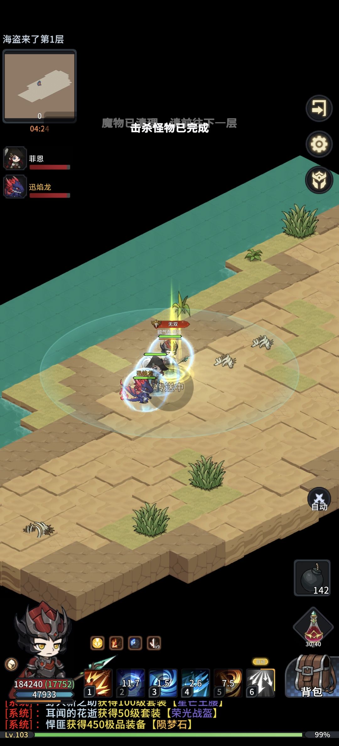 起码准备个100炸弹再入场,因为靠打怪是行不通的,里面会一直刷新海盗,你打怪的速度跟不上刷新,所以需要用炸弹清怪。
