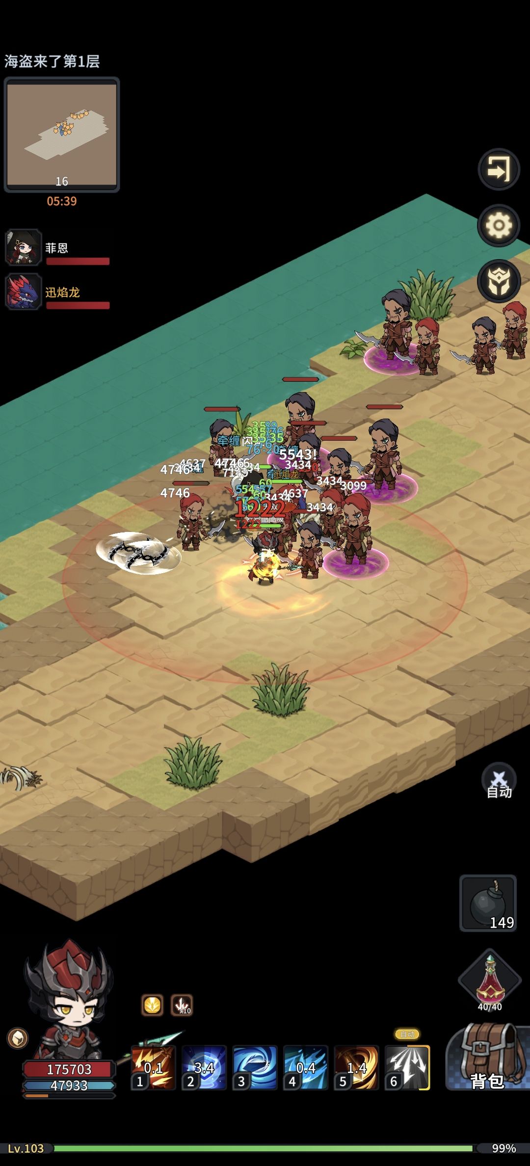 入场后重点注意⚠️右下角为炸弹选项,点击即用,但是⚠️它不会自动寻怪,它是按角色面对方向呈抛物线,所以需要边跑边注意自己角色朝向因为并不需要打怪所以各种盾加血可以安排上,里面各种怪物都是按你自己的启灵等级来的。