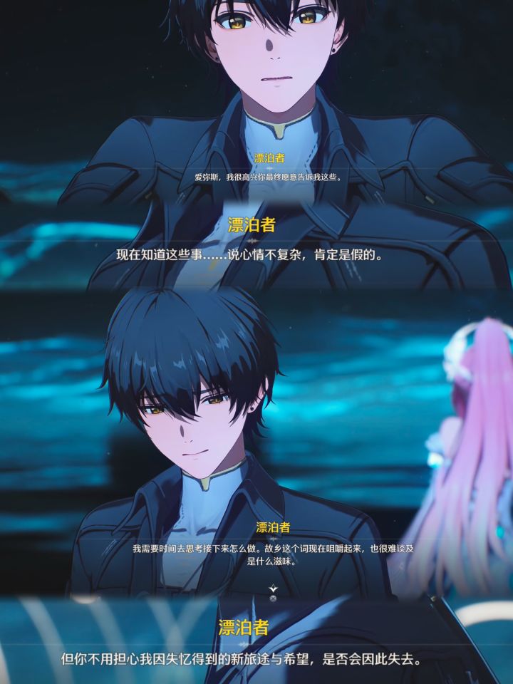 我觉得3.1上半的剧情是鸣潮有史以来最好的剧情 我不知道是不是有人和我一样 看到爱弥斯回到过去重现3.0剧情的时候狠狠的震撼 原来那个你们不是初遇而是重逢