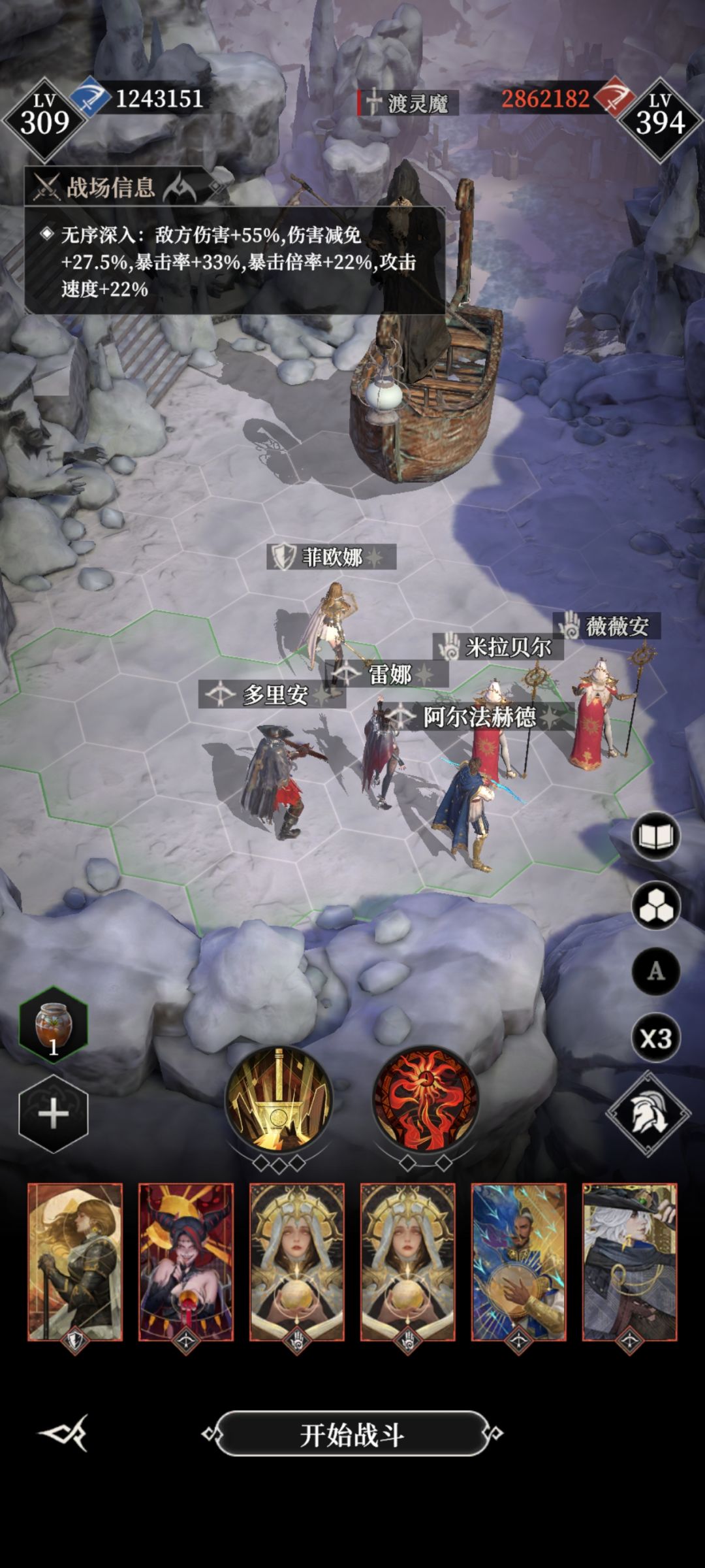 3.有唤厄之后就不需要详细打磨阵容了,主要是第一关没有buff怎么过。