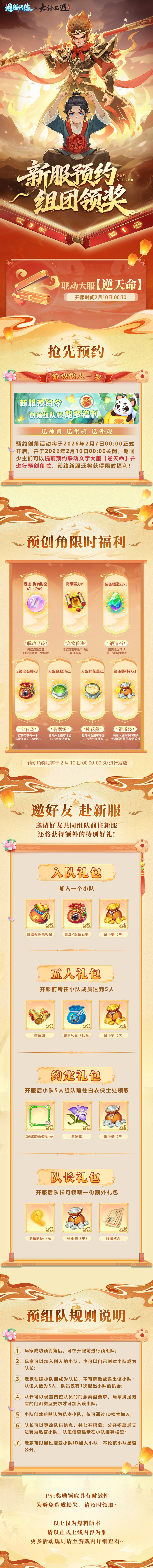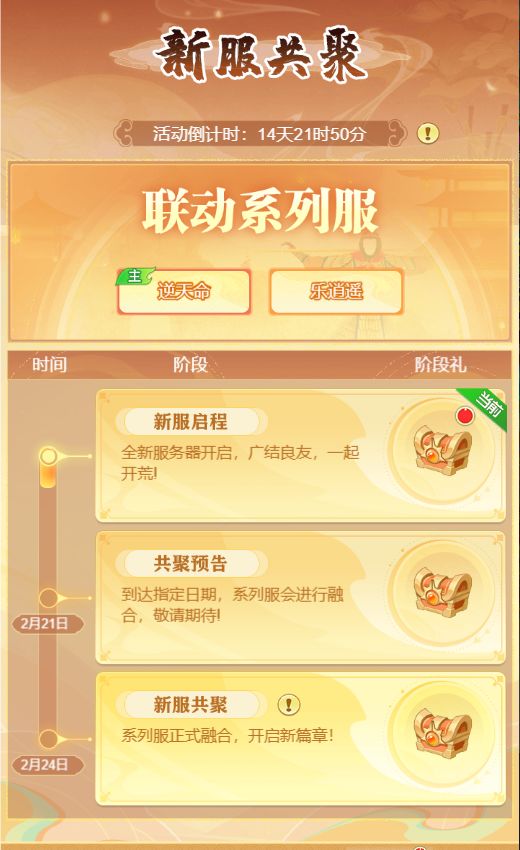 ③ 联动系列服将在2月22日正式合服,届时【乐逍遥】额外享有经验、资源进度补偿奖励,确保进度平行,无论少主何时加入,均可无损追赶进度!
