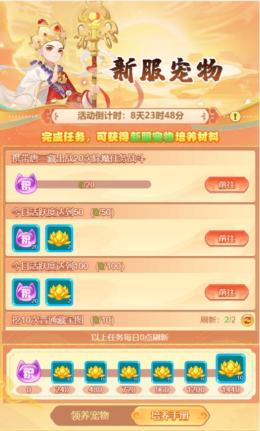 2.完成培养手册任务可获得培养积分与道具奖励,培养任务每日0点刷新
