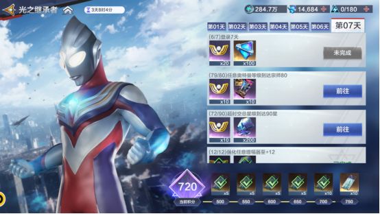 首先介绍的是光之继承者这边的话盐巴也看了一下没有什么比较难的任务,都是正常提升战力可以顺带完成的任务。比较需要注意的就是超时空模式到打到60星就能拿满奖励了后面的星不想打的话也可以不打。