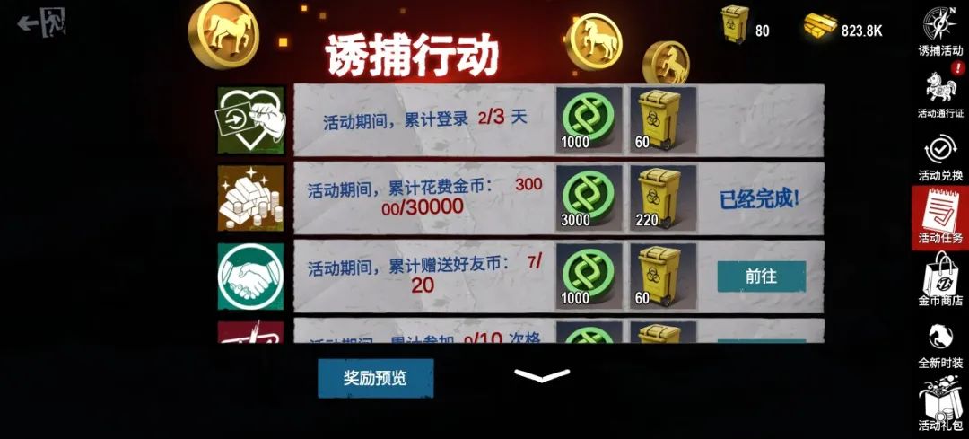 活动奖励类型由地图决定,不受所召唤僵尸影响。其中ABC地图产出基础奖励染色体币,DE地图产出高级奖励骏马银币,F地图产出高级奖励骏马金币。可以点击诱捕详情看到自己当前地图星级下每日最高奖励和系统满星级奖励。