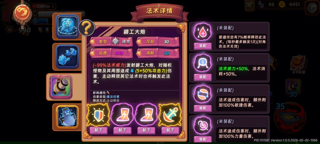 如图配置,刷的很快,一人带4个炮。。。。。。