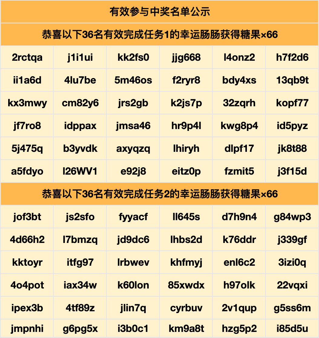 恭喜肠肠获得奖励~糖果奖励将会在14个工作日内发放到邮箱,请注意查收!