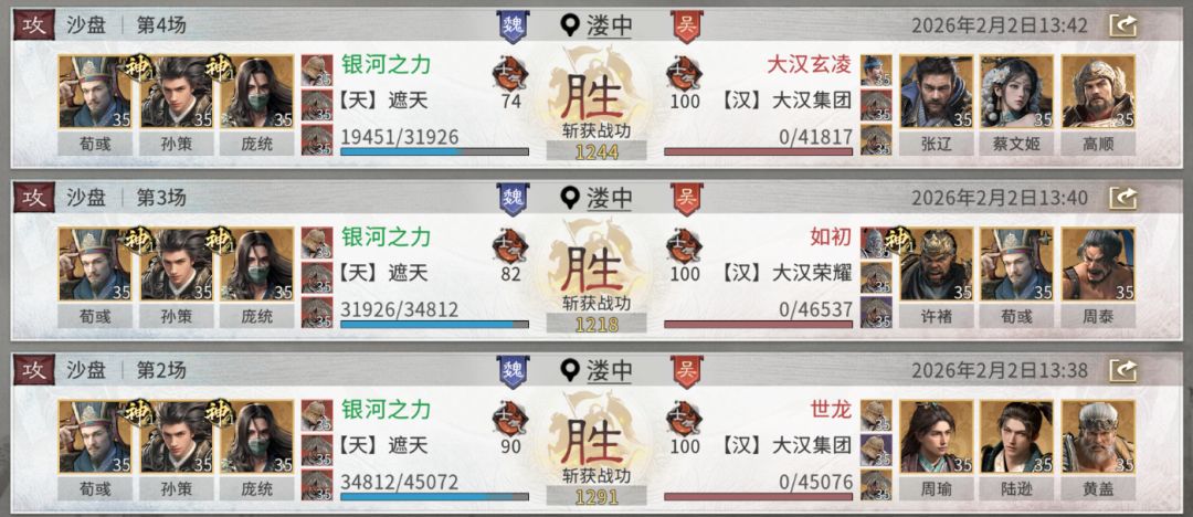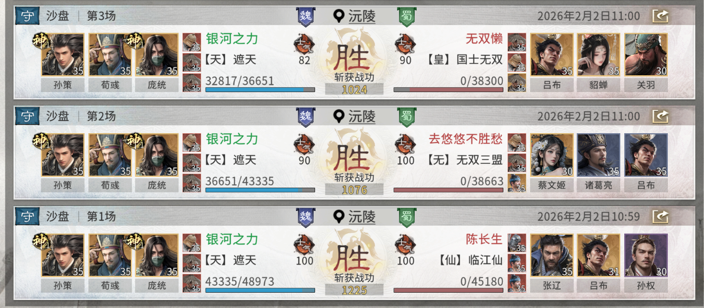 在本次【灵感内测】中,庞统的加强催生了一套强势阵容——由庞统、荀彧、孙策组成的“连环小霸王队”。