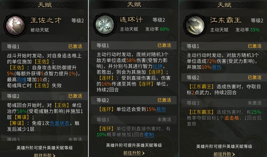 荀彧的天赋【王佐之才】能为孙策提供10点武力和5%攻击力的精准加成,直接强化其面板属性,为孙策创造高额爆发伤害奠定基础。