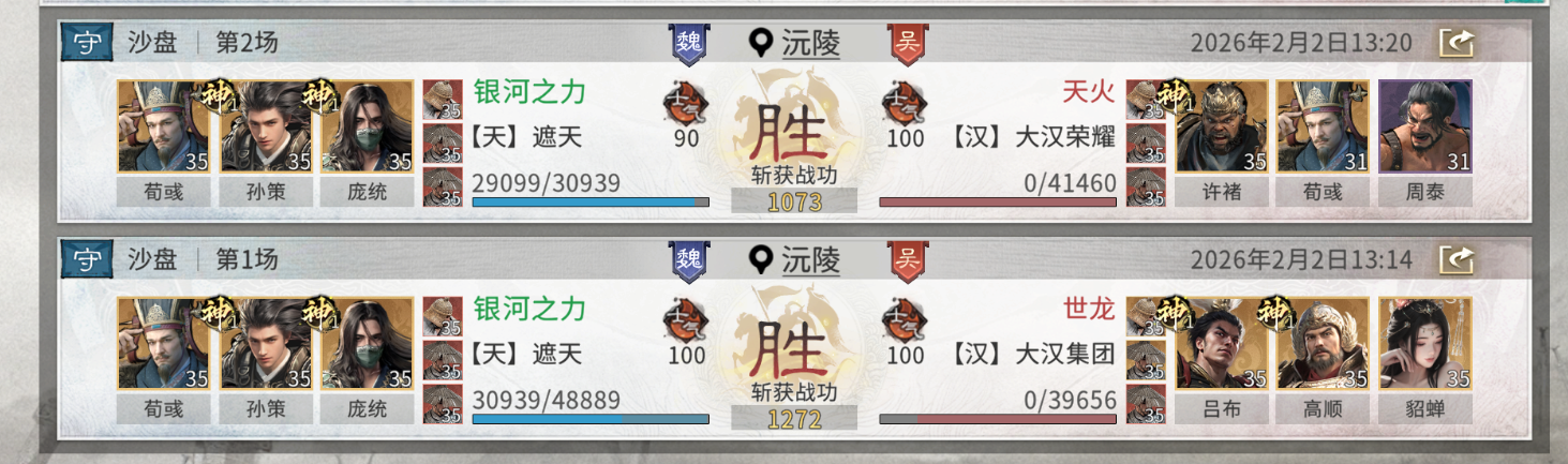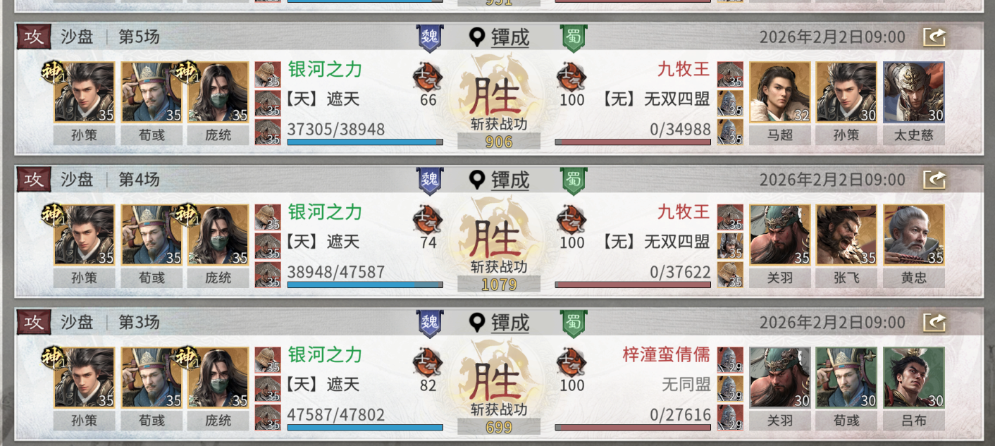 整体思路是以庞统作为主要承伤及辅助单位,孙策的觉醒技横江夺志为主要输出手段。