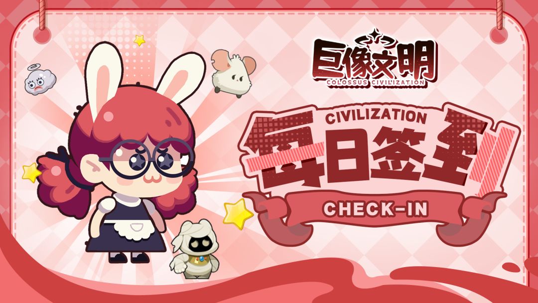 ➤ 点击巨像文明-tap专属 | 2月签到活动跳转进入活动页,活动时间内累计签到2天可领取刮刮券、寻宝图章随机&自选橙色武器碎片奖励。