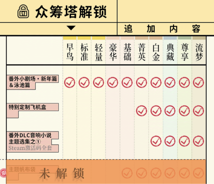 本篇内容较长在此省流说明:本篇内容包括了追加的5篇DLC内容的介绍、邮费说明、档位追加说明~