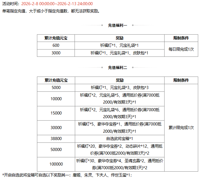 活动时间:2026-2-8 00:00:00~2026-2-13 24:00:00