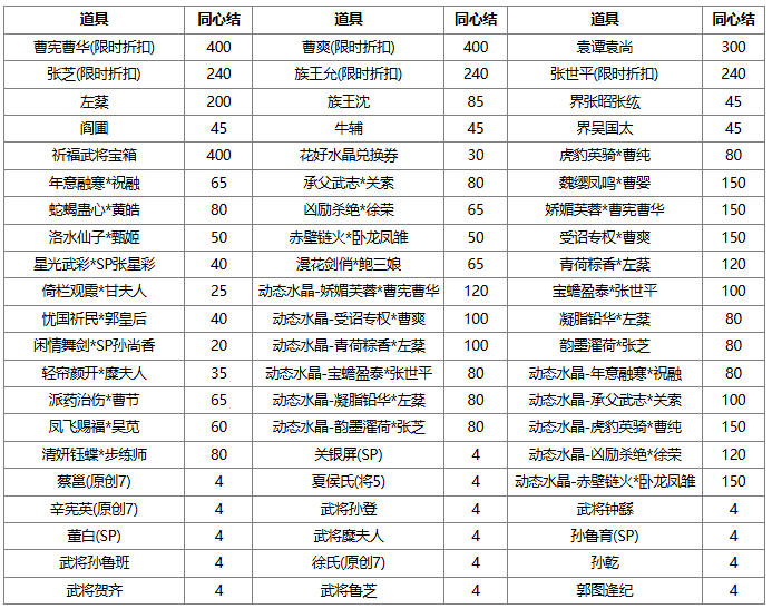 1、同心结可兑换奖励,若兑换奖励是在此次活动前已拥有的永久武将、皮肤、三国秀,则无法重复兑换。