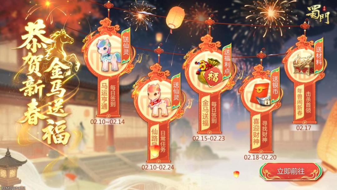 年关脚步将近,丙午马年马上就到蜀仙盟早已张灯结彩备好了大礼超丰富春节活动已全部就绪登录游戏就可获得全新马年暗金仙灵更有海量福利点、绑银等超值奖励等你拿!快随门叔一起往下看看活动详情吧~