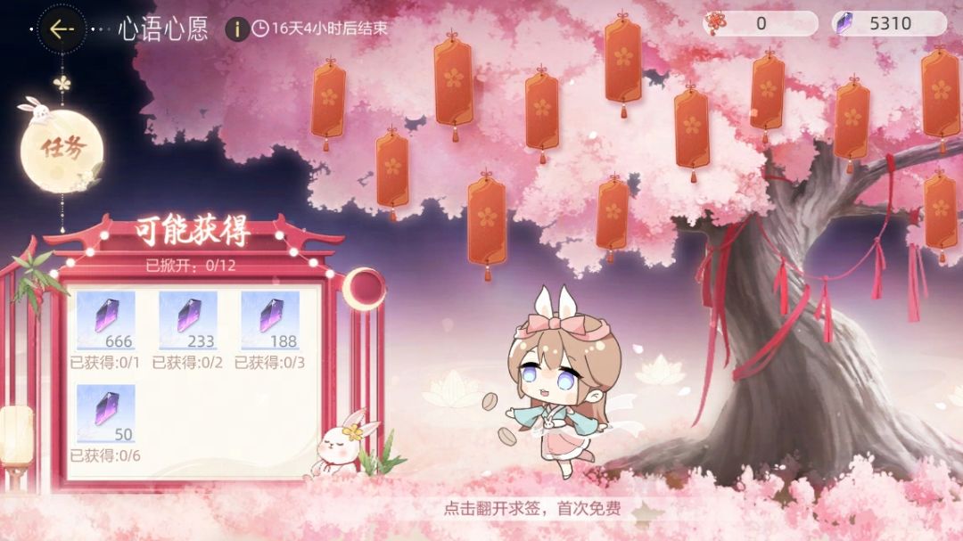 新的一年当然希望有好运气,想必每位艺人都心怀美好的愿望。2月14日,“心语心愿”活动上线,使用许愿结抽签就能获得奖励~快来许愿树下许下你心目中最想要实现的愿望吧,说不定很快就能实现啦!