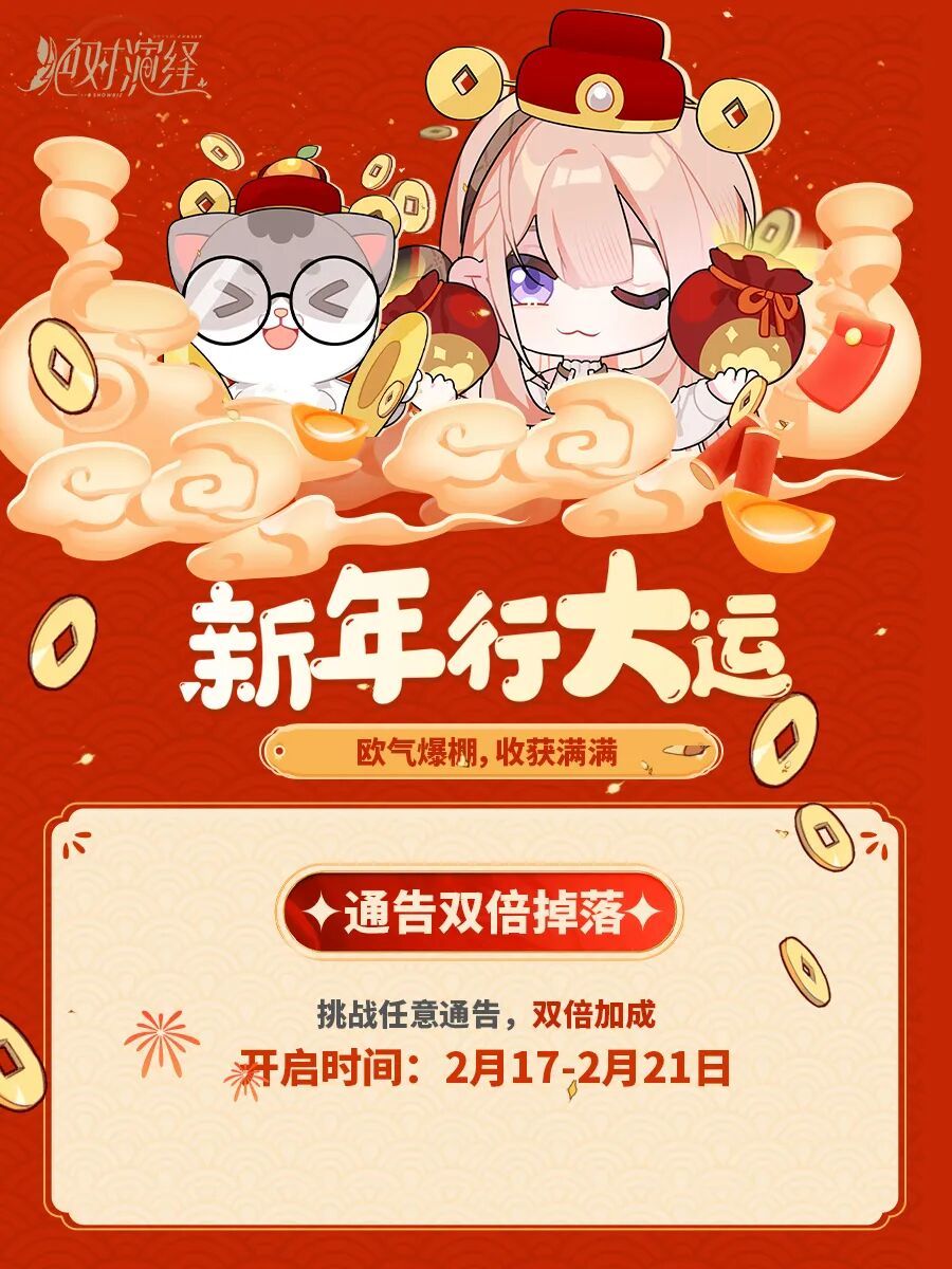 不少艺人们会在放假时打磨自己,把握每一秒为自己充电。因此我们为勤劳的艺人们安排了通告双倍活动,2月17日起,“新年行大运”活动开启,艺人们别忘了参加哦!