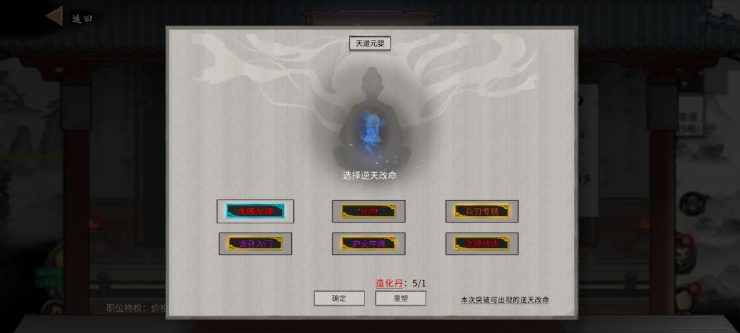 鬼谷八荒才玩了没几天,我一直有个疑问?宗门的逆天改命是不是只有在境界提升后,在宗门突破那个里面选了才生效,我问了deepseek。它说只要在宗门我用了太古残卷之后直接就生效了(我是用太古残卷改了宗门的逆天改命)但是我实际体验下来又没有那个虎魄龙魂的逆天改命所以很疑惑?