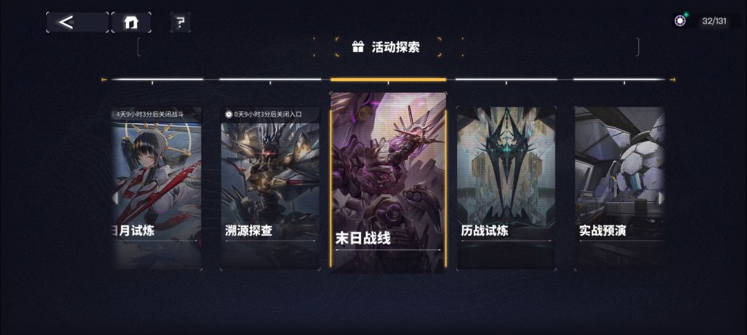 活动探索没怎么动,主要就是这个碎星虚影一定要打,一周刷新一次。末日战绩每日刷新,奖励一般,能摸就摸一下: